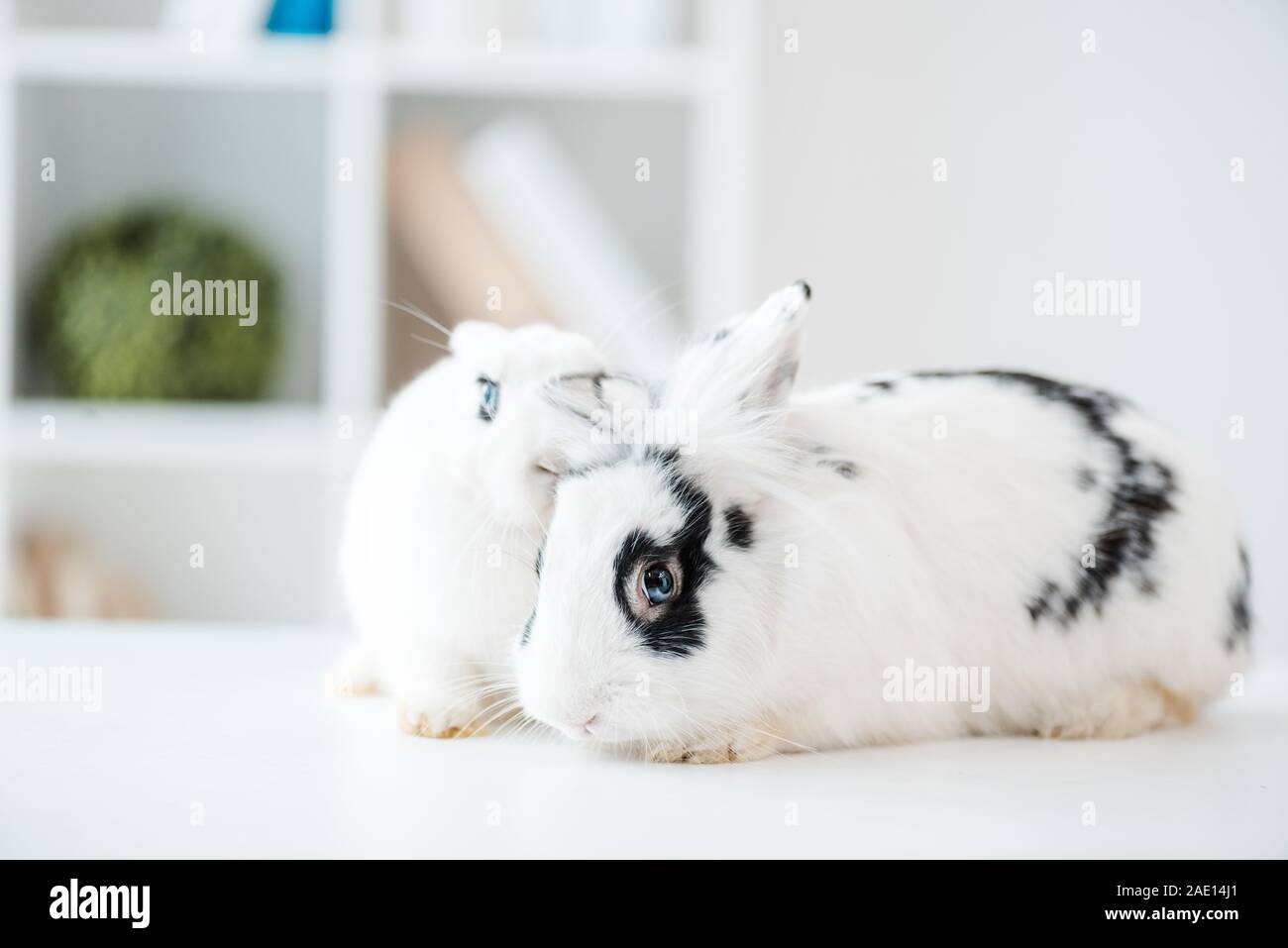 Two Adorable Black And White Rabbits Nuzzling Chiapas Mexico Stock Photo Alamy